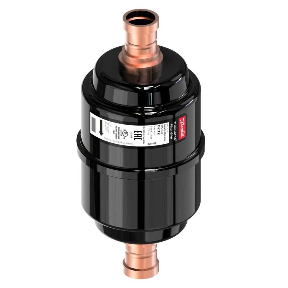 The Danfoss DML (023Z455591) is the professional’s choice for permanent, space-constrained installations across the UAE. Despite its minimal 3 cubic inch size, it features a solid core of 100% Molecular Sieve, providing maximum moisture adsorption for HFC refrigerants and sensitive oils. This model is distinguished by its 1/4 in Cu-plated ODF solder connections, which facilitate a reliable and easy brazing process with copper piping, eliminating potential leak points compared to flare fittings. Its powder-coated steel shell is engineered to resist corrosion in the humid and saline air of UAE coastal regions, making it an essential component for high-end commercial refrigerators and specialty cooling equipment in the Middle East.