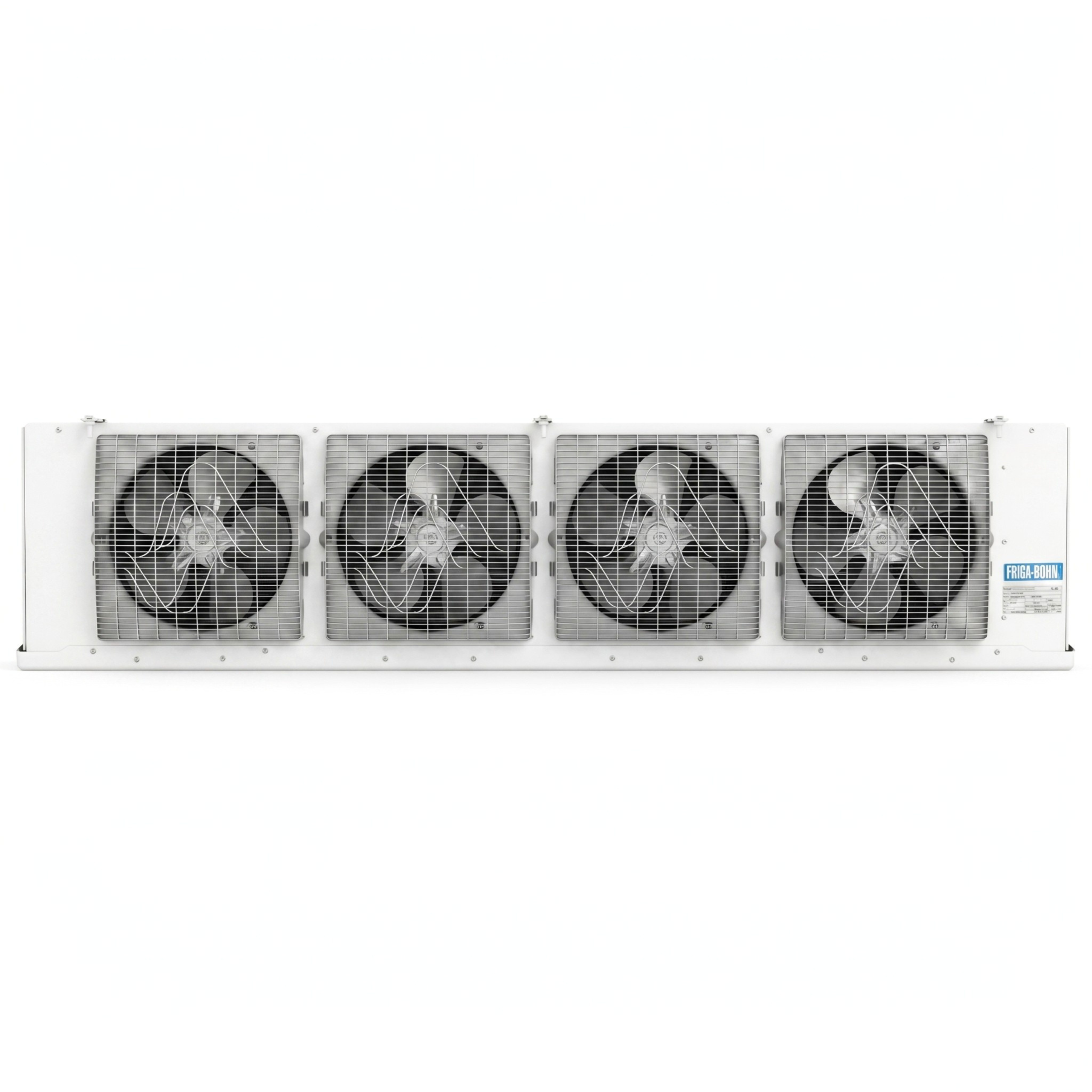 The Friga-Bohn 3C-E 3454 E Cubic Unit Cooler is a heavy-duty, high-capacity evaporator designed for large commercial cold rooms and low-temperature refrigeration applications. It is equipped with 4 × 300 mm axial fans operating at 1350 rpm, delivering approximately 4840 m³/h airflow with an air throw of up to 24 meters, ensuring powerful and uniform air distribution for large-scale cooling environments.