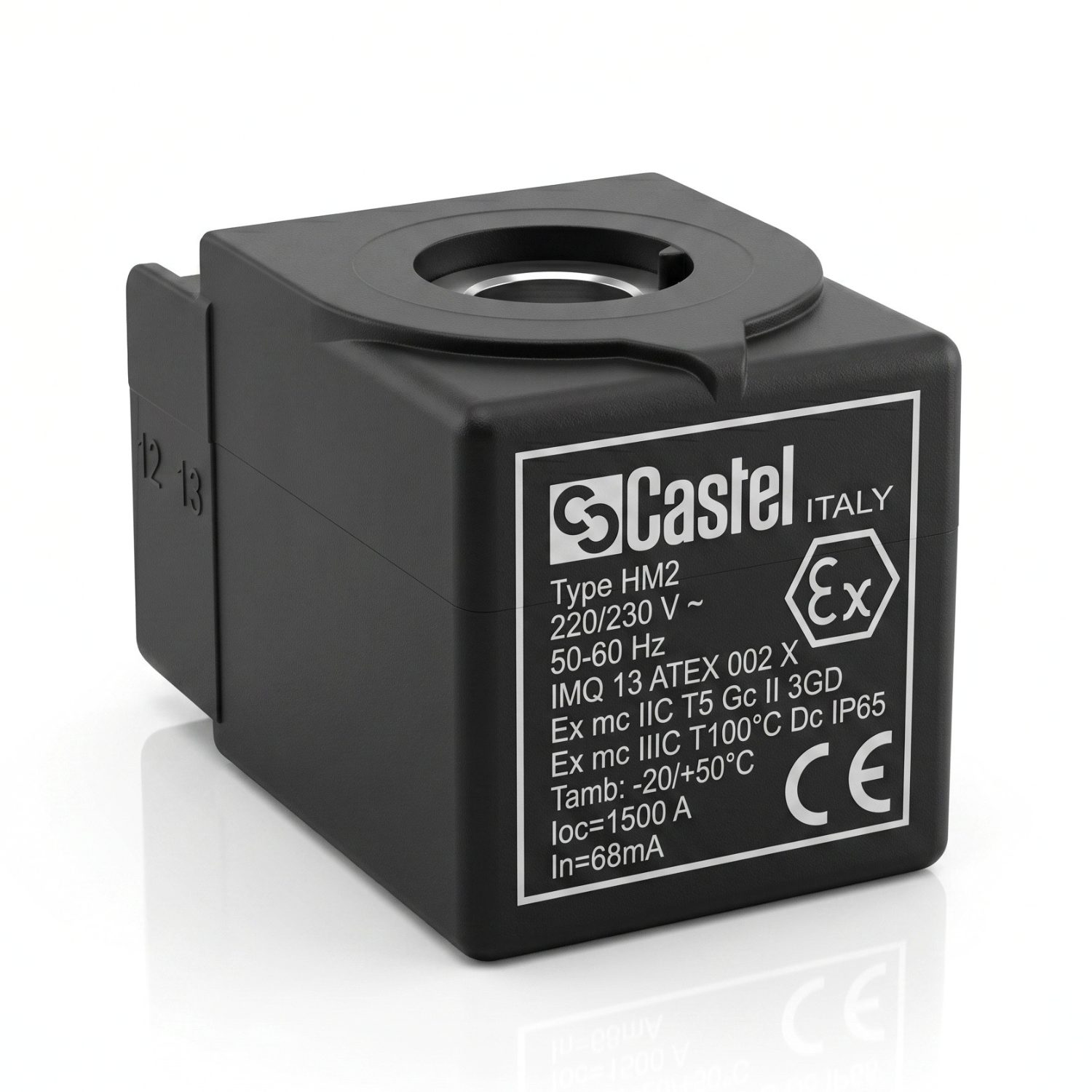 The Castel 9100EX/RA2 Coil is a high-quality ATEX-approved solenoid coil designed for use in HVAC and refrigeration systems operating in hazardous environments. Built with HM2 coil type construction, it ensures reliable and safe operation in EX Zone 2 applications.