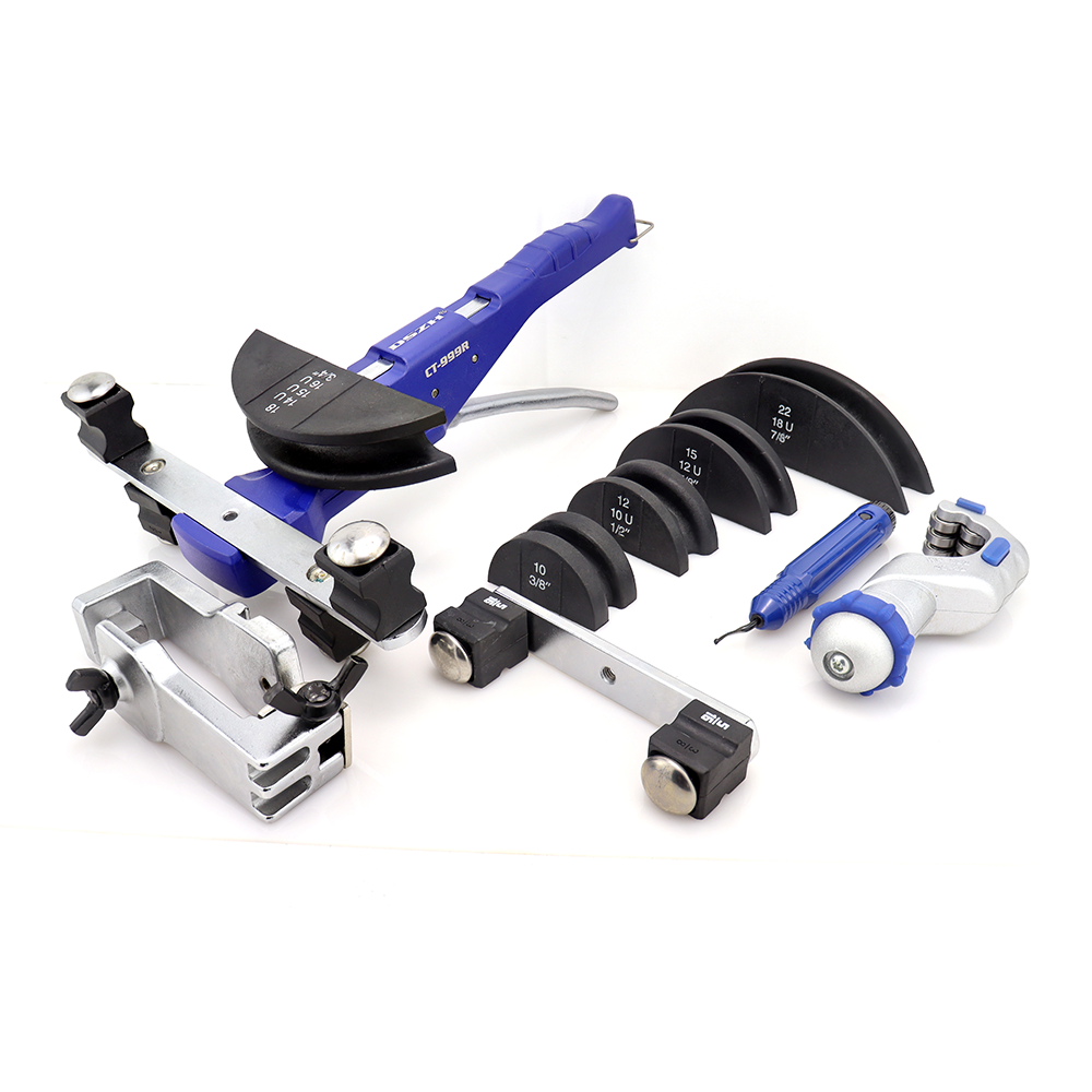 The CT-999 Tube Bender is a heavy-duty hand tool engineered for accurate bending of copper tubing used in refrigeration and air conditioning systems. Equipped with a fibre wheel bending mechanism, it ensures smooth bends without flattening or damaging the tube surface.