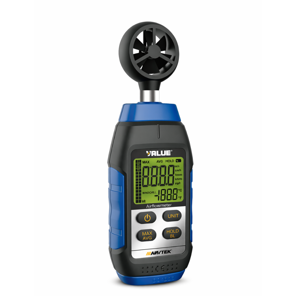 The VMA-1 digital anemometer from Value is a compact and accurate airflow measuring device designed for HVAC and ventilation system analysis. It is used to measure air velocity in ducts, vents, fans, and air conditioning systems.