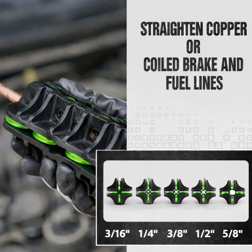 This tool features a multi-roller straightening mechanism, allowing pipes to pass through smoothly while removing bends without damaging the material or reducing pipe diameter. It ensures clean and professional pipe alignment before further processing such as flaring or brazing.