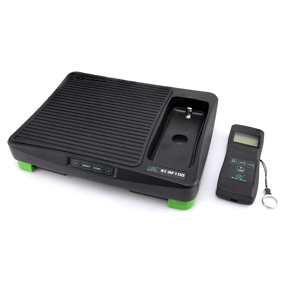 The ST-RF100 includes a separate wireless controller with a large digital display, enabling clear readings and easy operation. Its anti-slip rubber platform enhances stability, making it suitable for both field and workshop environments.