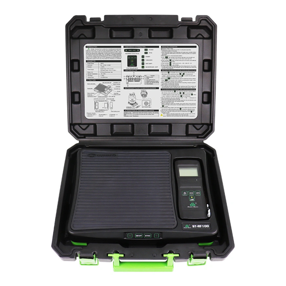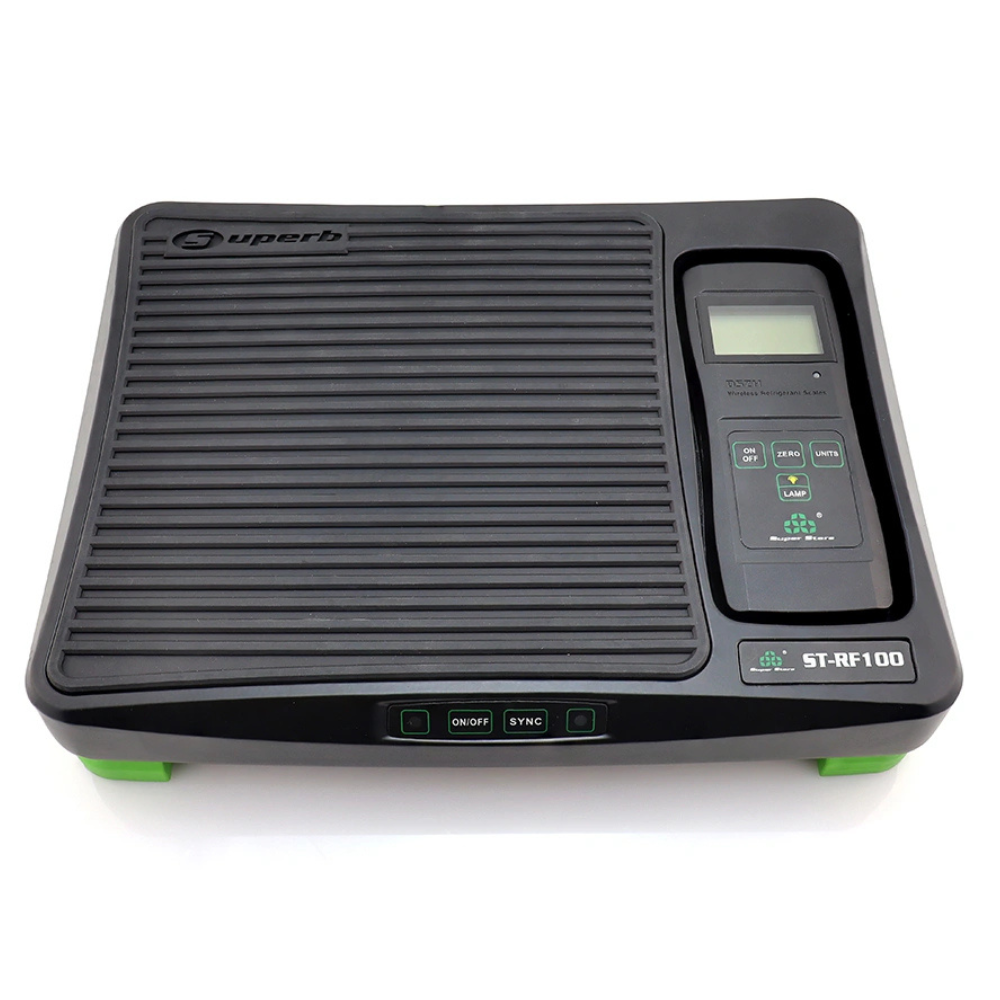 The ST-RF100 Wireless Electronic Refrigerant Scale by Super Stars is a high-precision charging and recovery scale designed for HVAC and refrigeration applications. Featuring advanced wireless control technology, it allows technicians to monitor and operate the scale remotely, improving efficiency and convenience during refrigerant charging.